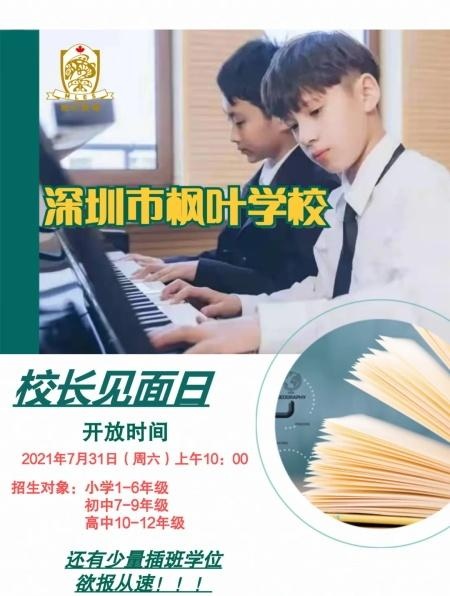 深圳枫叶国际学校隶属于中国枫叶教育集团。学校秉承枫叶“中西教育优化结合,实施素质教育”的办学理念,致力于履行“不分种族、肤色、国籍,为所有受教育者提供教育服务”的使命,设立小学、初中和高中学历教育,为全日制寄宿学校。办学规模为1500人,实行20-25人小班化教学,1:5的超高师生比,较大限度满足学生个性化需要。初小学阶段以让学生拥有“扎实的文化基础、突出的英语优势、彰显个性的一技之长”为教学目标,在国 家义务教育课程的基础上,开设英语特色课程和校本课程,英语教育贯穿全程,中外教师共同授课。高中阶段以“理想教育”为育人目标,课程中西优化结合,开设全英AP课程+枫叶世界学校课程,以及高端学生社团,凭在校成绩直接申请海外大学。