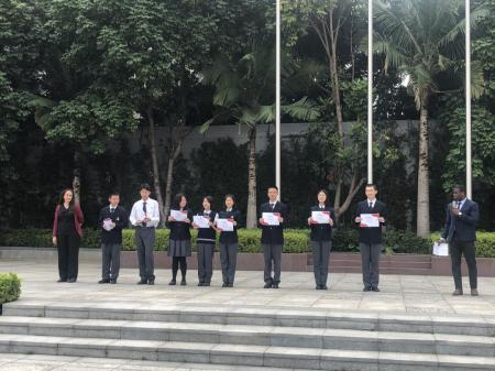 接下来,深圳枫叶高中上学期各方面成绩令人满意,学生们在各方面取得了良好的成绩。高中部外教为上学期进步学生和优秀学生颁奖。